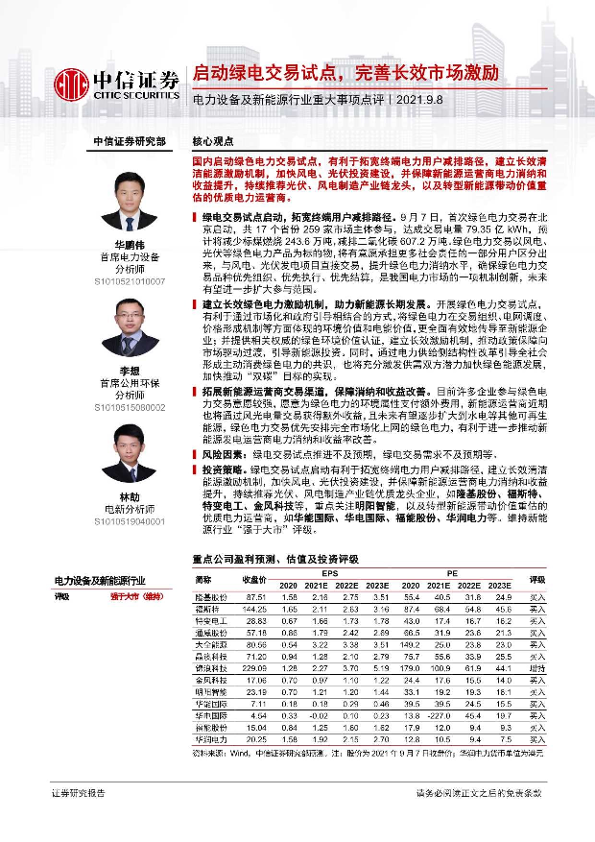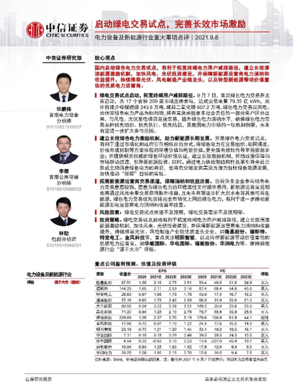 【中信证券】【20210908】电力设备及新能源行业重大事项点评:启动绿电交易试点,完善长效市场激励-2页