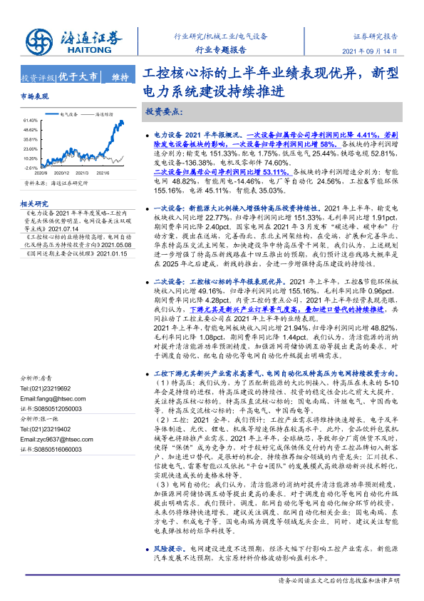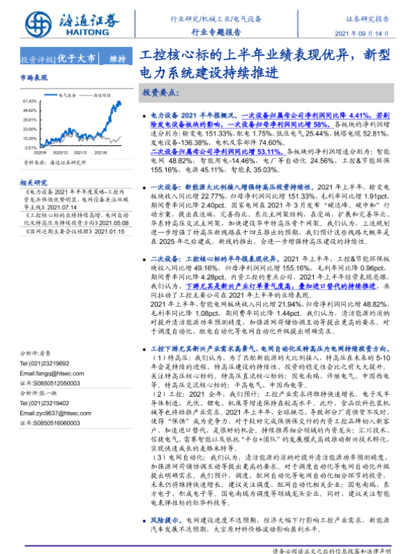 【海通证券】【20210914】电气设备行业专题报告:工控核心标的上半年业绩表现优异,新型电力系统建设持续推进-23页