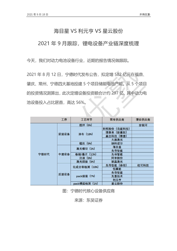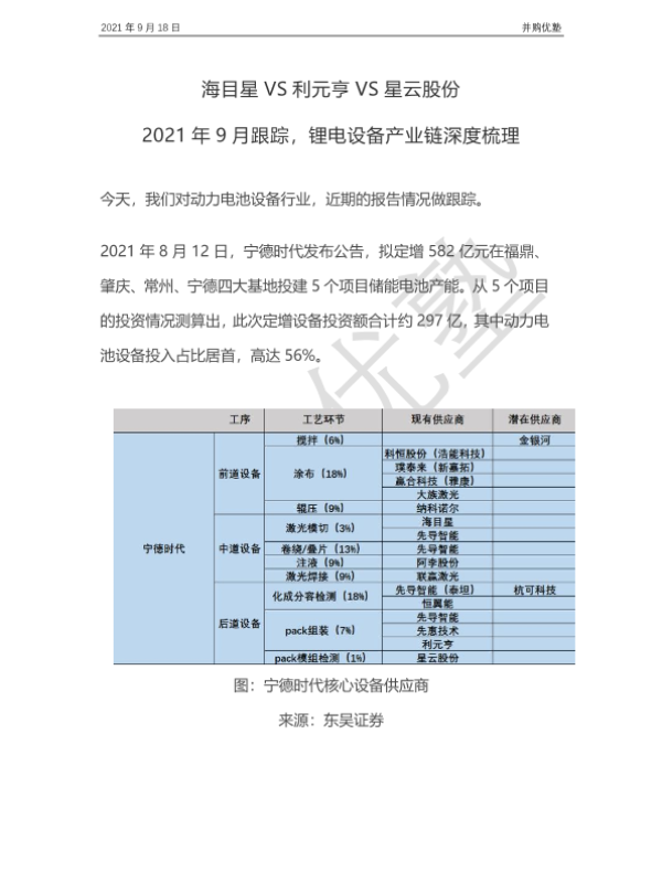 【并购优塾】【20210918】海目星VS利元亨VS星云股份:2021年9月跟踪,锂电设备产业链深度梳理-21页