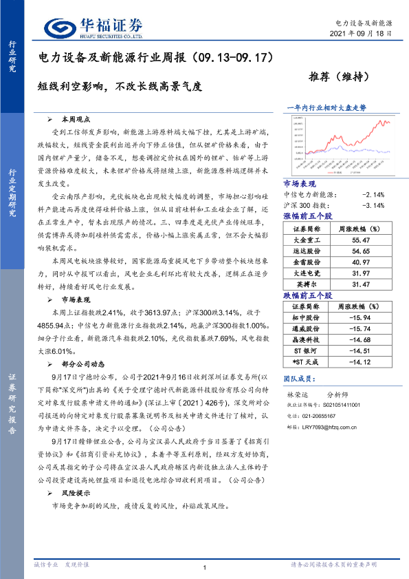 【华福证券】【20210918】电力设备及新能源行业周报:短线利空影响,不改长线高景气度-6页