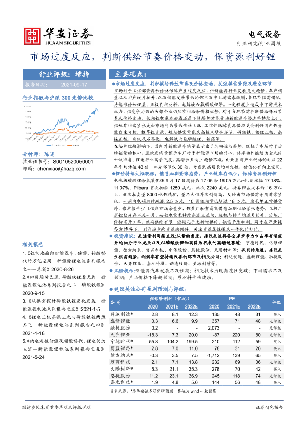 【华安证券】【20210917】20210917-华安证券-电气设备行业周报:市场过度反应,判断供给节奏价格变动,保资源利好锂-24页