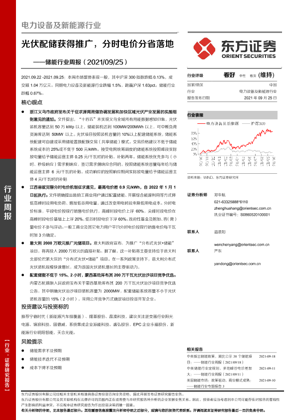 【东方证券】【20210925】储能行业周报:光伏配储获得推广,分时电价分省落地-15页