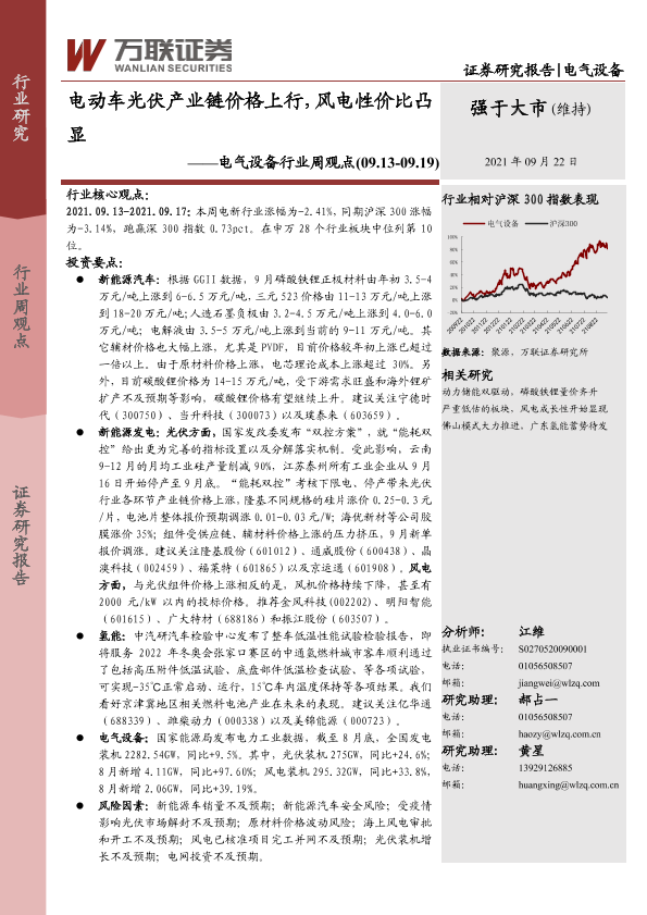 【万联证券】【20210922】电动车光伏产业链价格上行,风电性价比凸显-12页