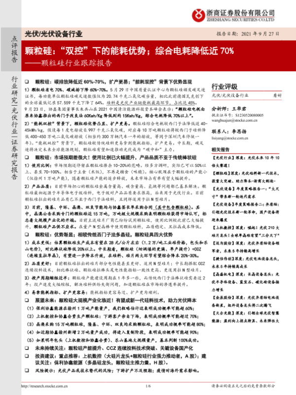 【浙商证券】【20210927】颗粒硅:“双控”下的能耗优势;综合电耗降低近70%-6页