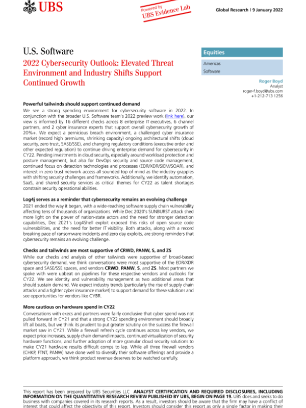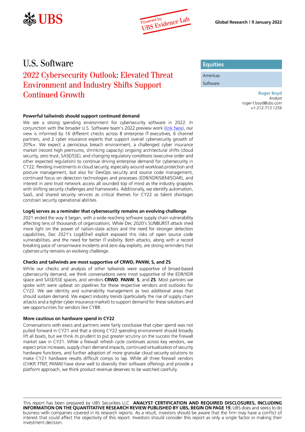 【瑞银】【20220109】2022年网络安全展望:高威胁环境和行业变化支持持续增长-26页