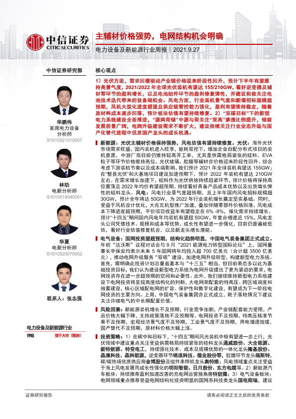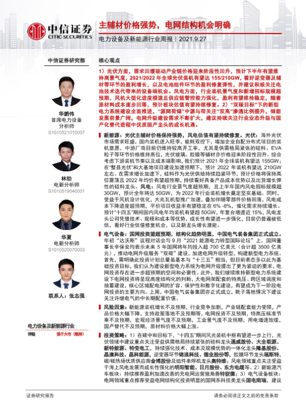 【中信证券】【20210927】电力设备及新能源行业周报:主辅材价格强势,电网结构机会明确-10页