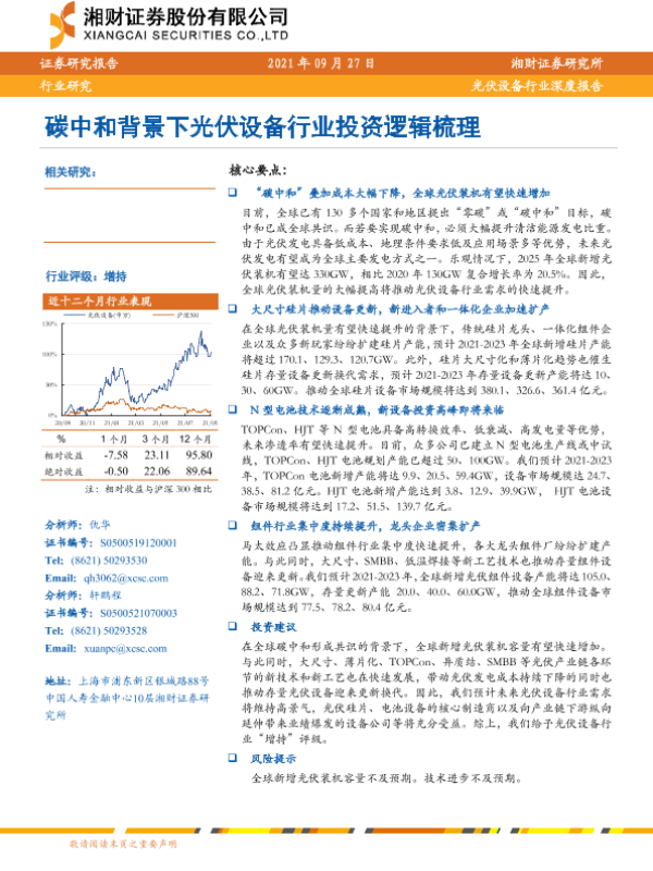 【湘财证券】【20210927】碳中和背景下光伏设备行业投资逻辑梳理-42页