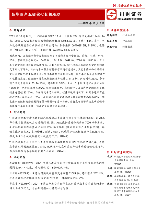 【川财证券】【20211008】2021年10月8日新能源产业链核心数据跟踪-6页
