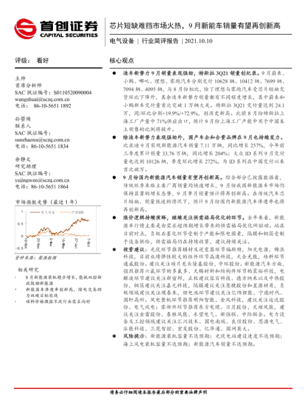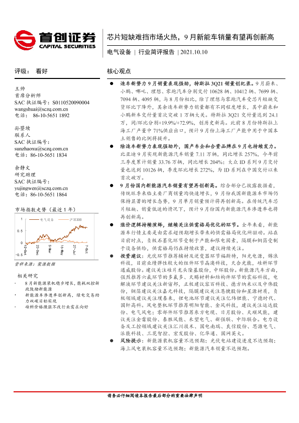 【首创证券】【20211010】芯片短缺难挡市场火热,9月新能车销量有望再创新高-14页
