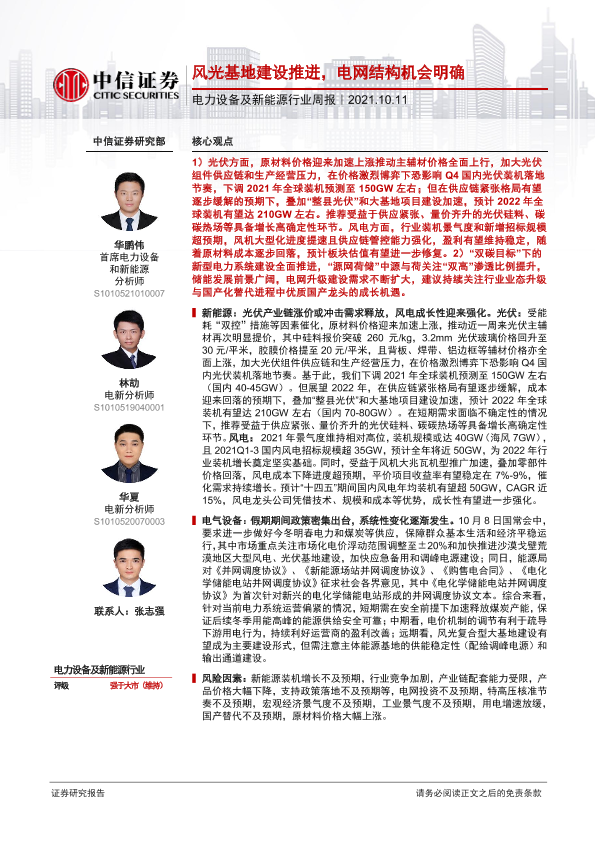 【中信证券】【20211011】20211011-中信证券-电力设备及新能源行业周报:风光基地建设推进,电网结构机会明确-10页