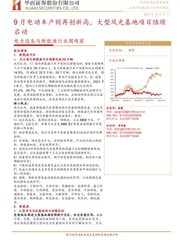 【华西证券】【20211017】20211017-华西证券-电力设备与新能源行业周观察:9月电动车产销再创新高,大型风光基地项目陆续启动-17页
