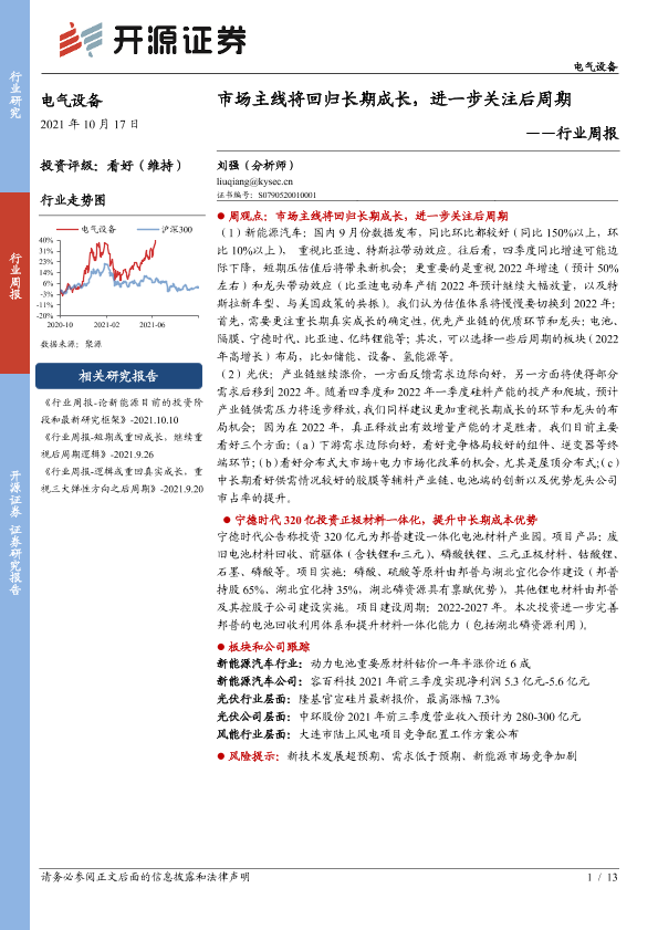 【开源证券】【20211017】20211017-开源证券-电气设备行业周报:市场主线将回归长期成长,进一步关注后周期-13页