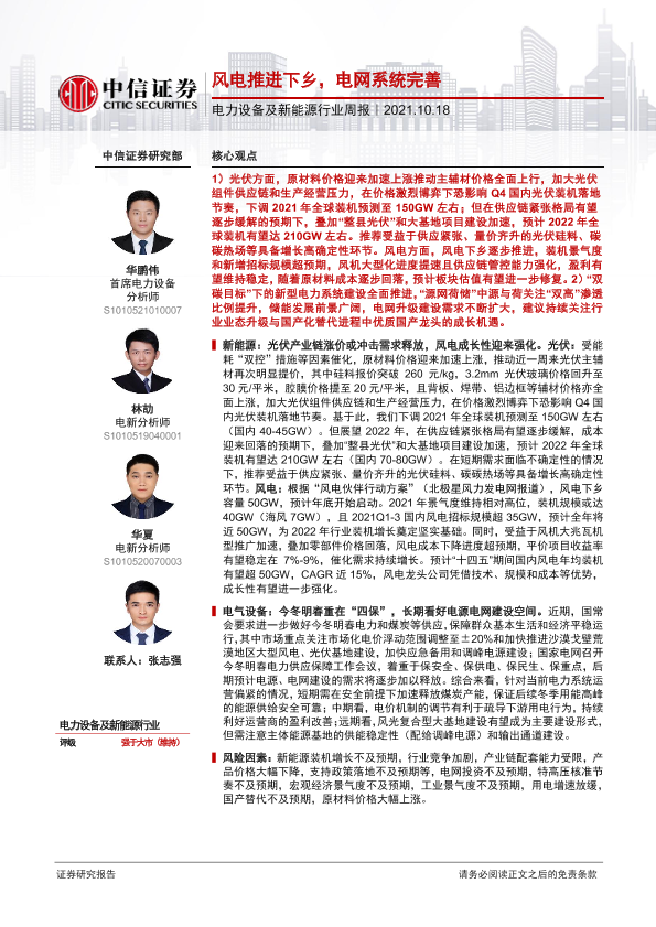 【中信证券】【20211018】电力设备及新能源行业周报:风电推进下乡,电网系统完善-11页