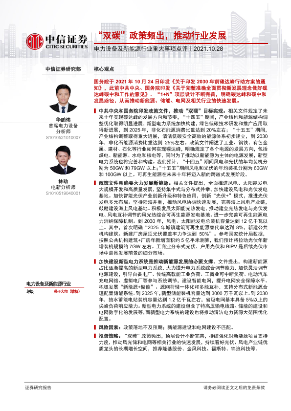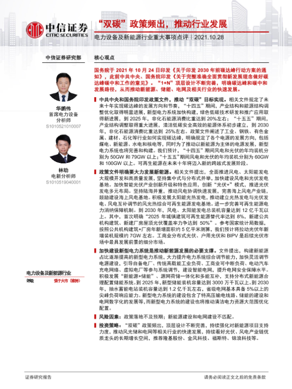 【中信证券】【20211028】电力设备及新能源行业重大事项点评:“双碳”政策频出,推动行业发展-3页
