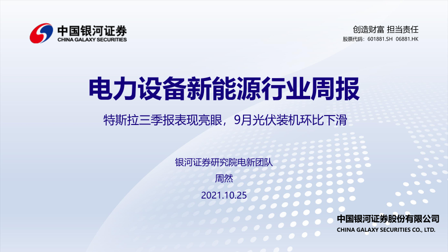 【银河证券】【20211025】电力设备新能源行业周报:特斯拉三季报表现亮眼,9月光伏装机环比下滑-52页