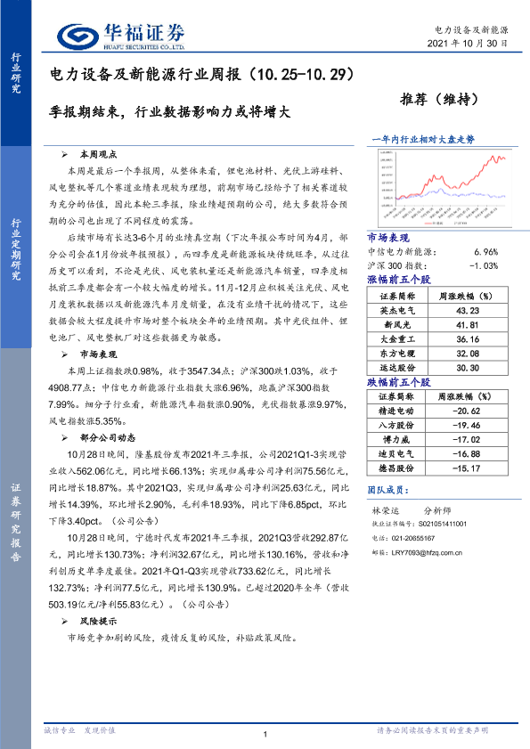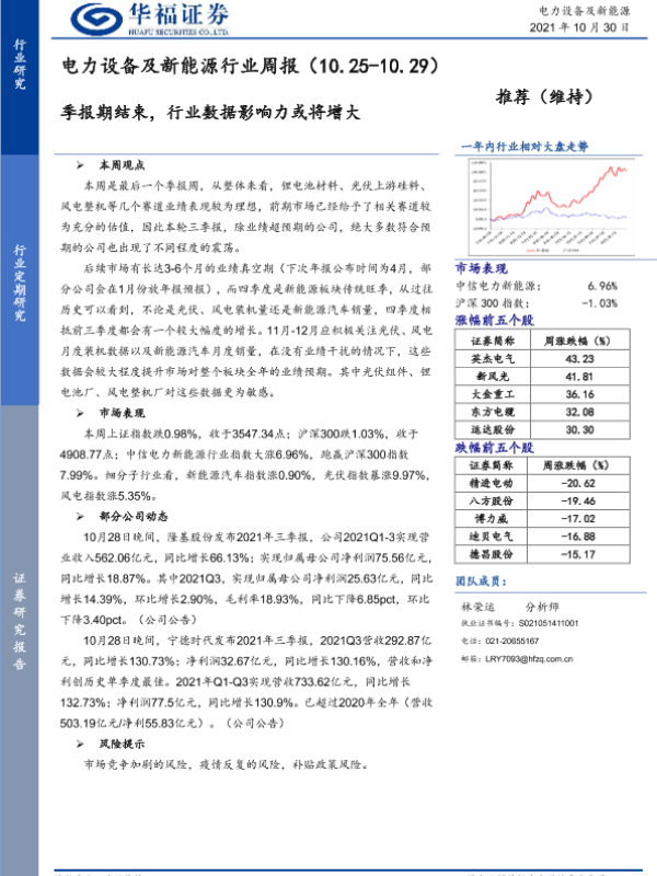 【华福证券】【20211030】电力设备及新能源行业周报:季报期结束,行业数据影响力或将增大-6页