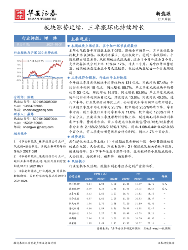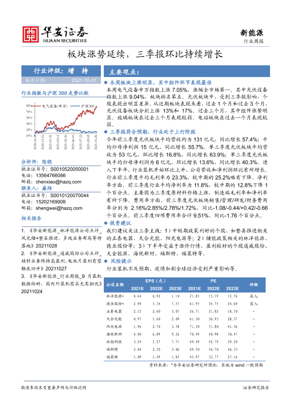 【华安证券】【20211031】20211031-华安证券-新能源行业周报:板块涨势延续,三季报环比持续增长-19页