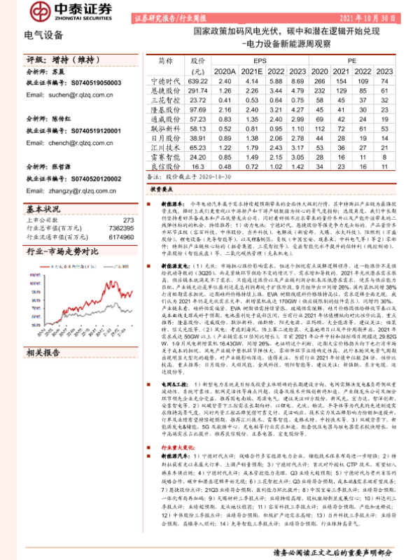 【中泰证券】【20211030】电力设备新能源周观察:国家政策加码风电光伏,碳中和潜在逻辑开始兑现-24页