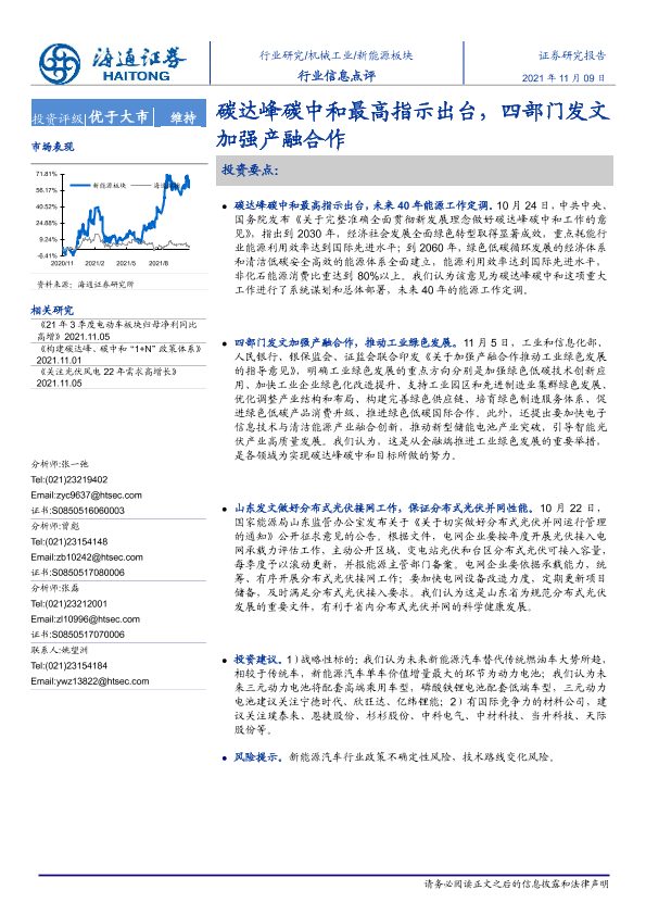 【海通证券】【20211109】20211109-海通证券-新能源板块行业信息点评:碳达峰碳中和最高指示出台,四部门发文加强产融合作-2页