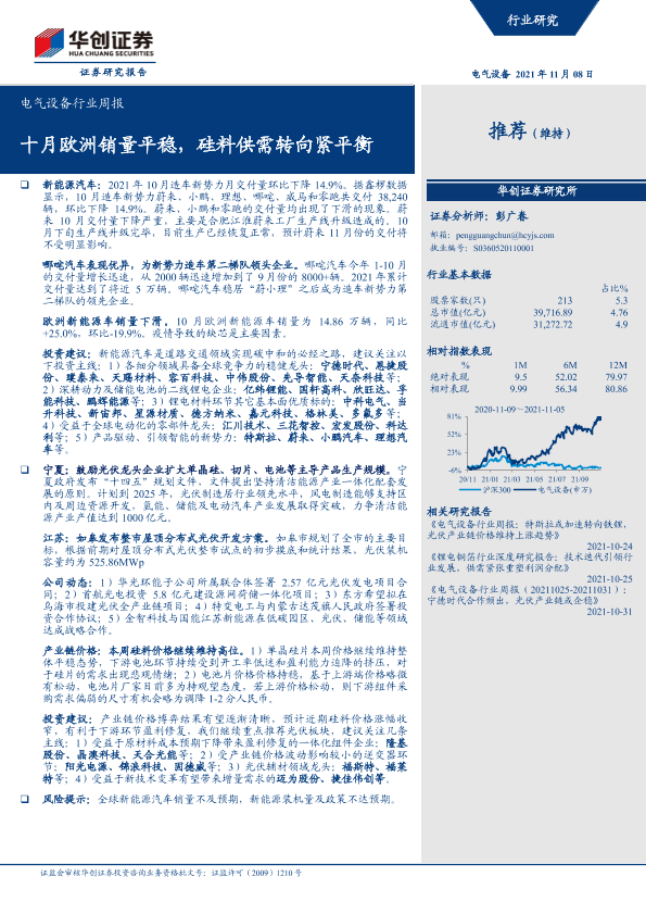 【华创证券】【20211108】20211108-华创证券-电气设备行业周报:十月欧洲销量平稳,硅料供需转向紧平衡-21页
