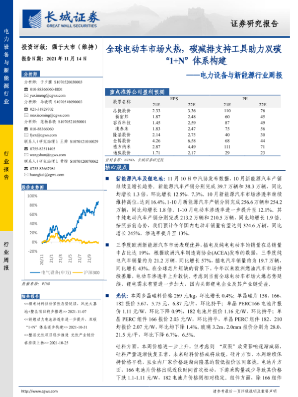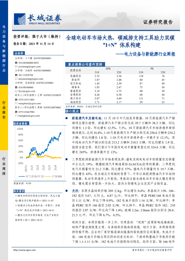 【长城证券】【20211114】电力设备与新能源行业周报:全球电动车市场火热,碳减排支持工具助力双碳“1+N”体系构建-14页
