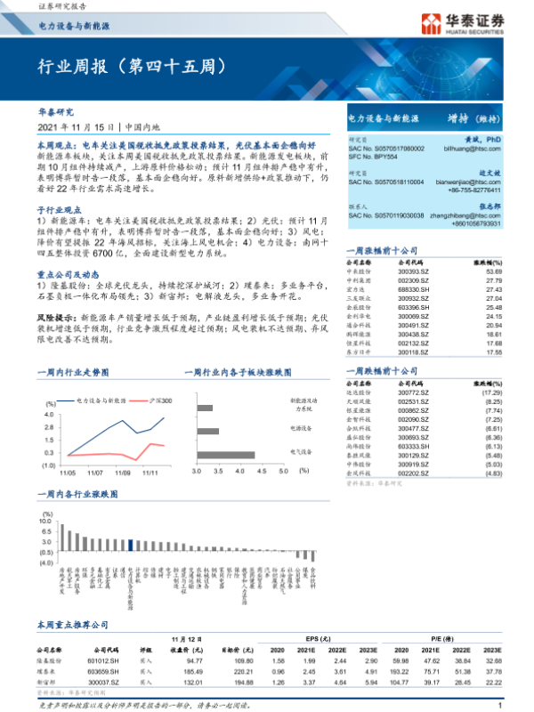 【华泰证券】【20211115】电力设备与新能源行业周报(第四十五周)-21页