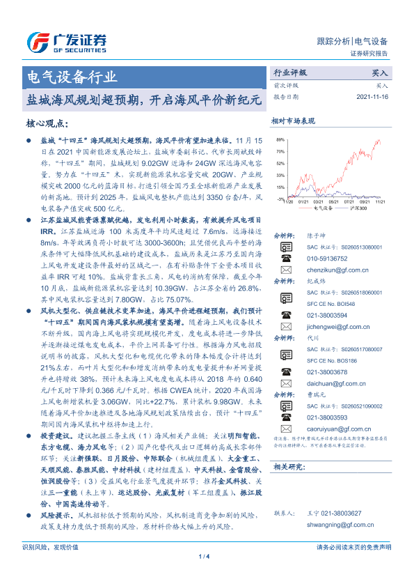 【广发证券】【20211116】电气设备行业跟踪分析:盐城海风规划超预期,开启海风平价新纪元-4页