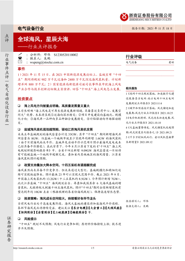 【浙商证券】【20211118】全球海风,星辰大海-5页