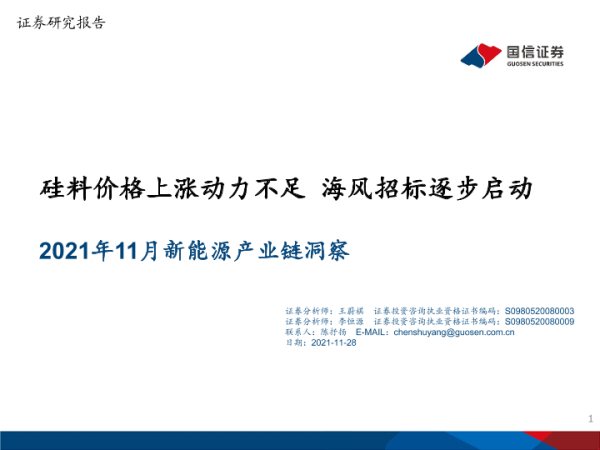 【国信证券】【20211128】2021年11月新能源产业链洞察:硅料价格上涨动力不足 海风招标逐步启动-12页
