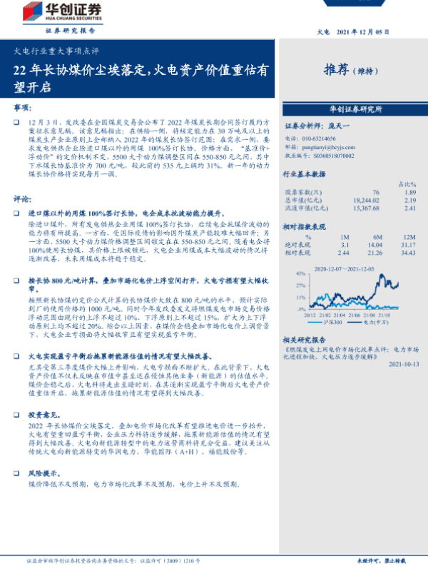 【华创证券】【20211205】20211205-华创证券-火电行业重大事项点评:22年长协煤价尘埃落定,火电资产价值重估有望开启-3页