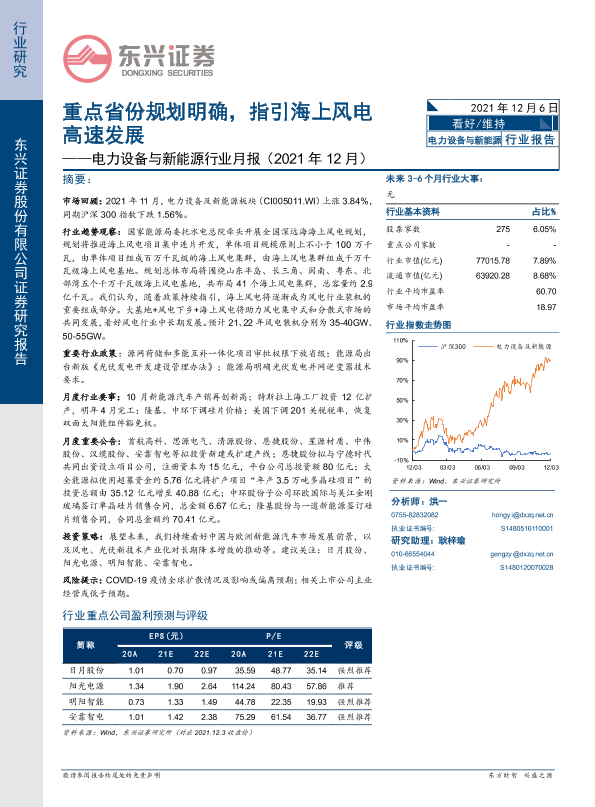 【东兴证券】【20211206】电力设备与新能源行业月报(2021年12月):重点省份规划明确,指引海上风电高速发展-19页