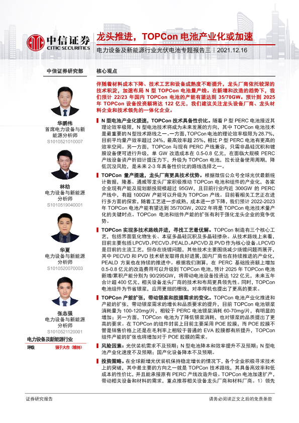 【中信证券】【20211216】龙头推进,TOPCon电池产业化或加速-22页