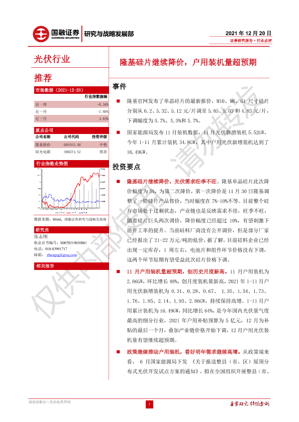 【国融证券】【20211220】光伏行业:隆基硅片继续降价,户用装机量超预期-3页