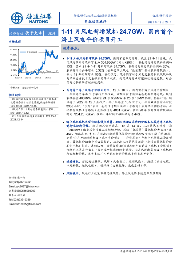 【海通证券】【20211224】20211224-海通证券-新能源板块行业信息点评:1-11月风电新增装机24.7GW,国内首个海上风电平价项目开工-2页