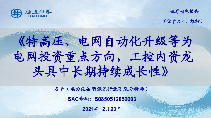 【海通证券】【20211223】特高压、电网自动化升级等为电网投资重点方向,工控内资龙头具中长期持续成长性-29页