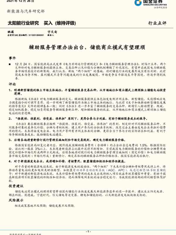 【国金证券】【20211226】辅助服务管理办法出台,储能商业模式有望理顺-3页