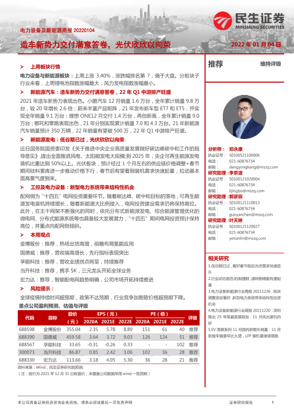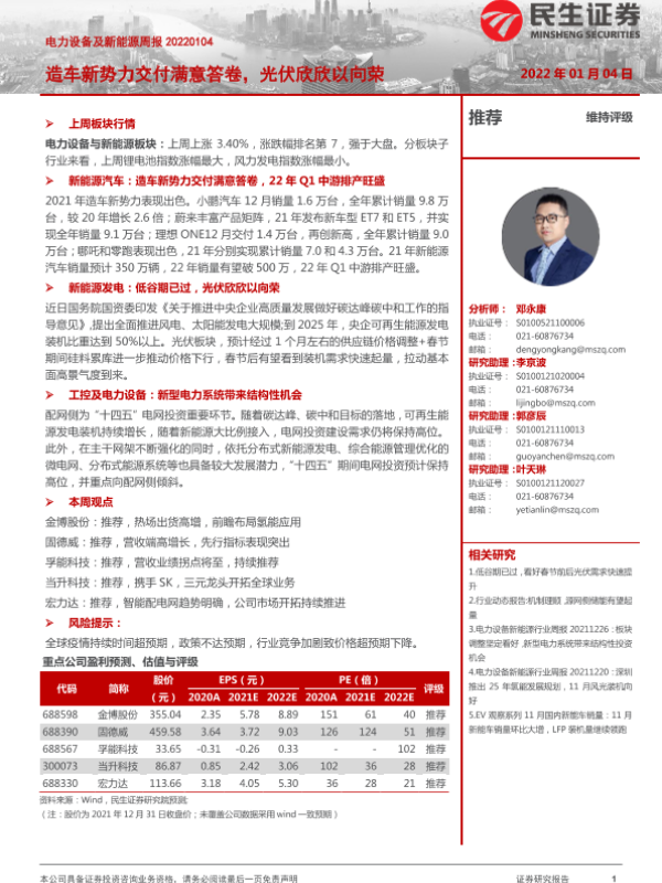 【民生证券】【20220104】电力设备及新能源周报:造车新势力交付满意答卷,光伏欣欣以向荣-25页