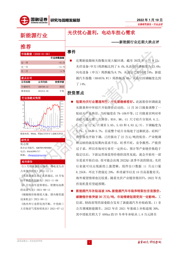【国融证券】【20220110】新能源行业近期大跌点评:光伏忧心盈利,电动车担心需求-4页