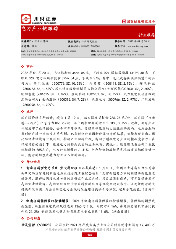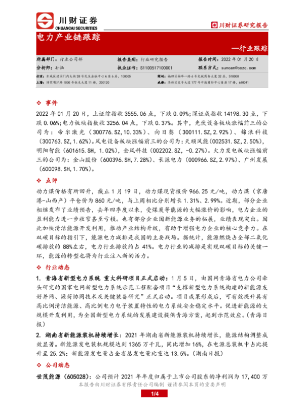 业绩预告 双碳目标 清洁能源 电力产业链 行业跟踪