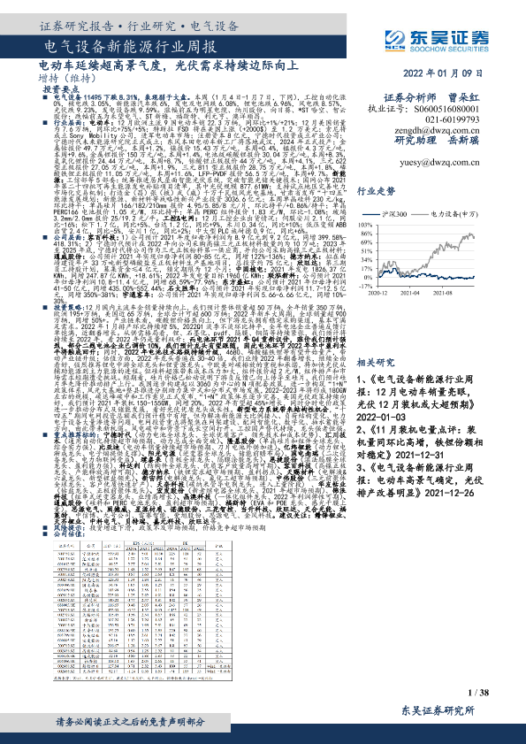 【东吴证券】【20220109】电气设备新能源行业周报:电动车延续超高景气度,光伏需求持续边际向上-38页