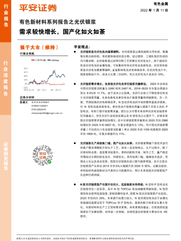 【平安证券】【20220111】有色新材料系列报告之光伏银浆:需求较快增长,国产化如火如荼-23页