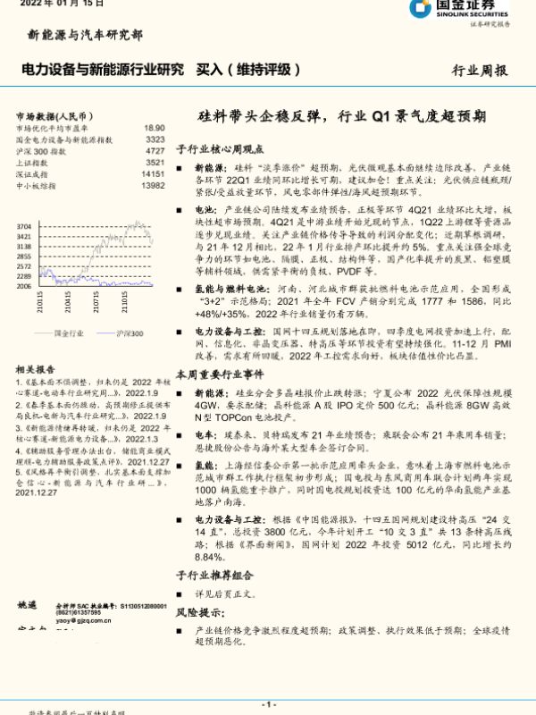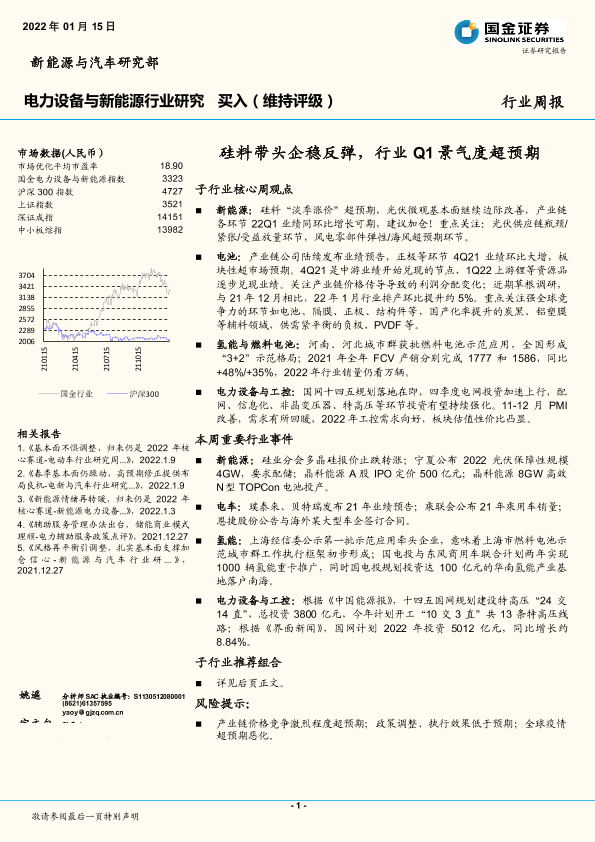 【国金证券】【20220115】电力设备与新能源行业研究:硅料带头企稳反弹,行业Q1景气度超预期-12页