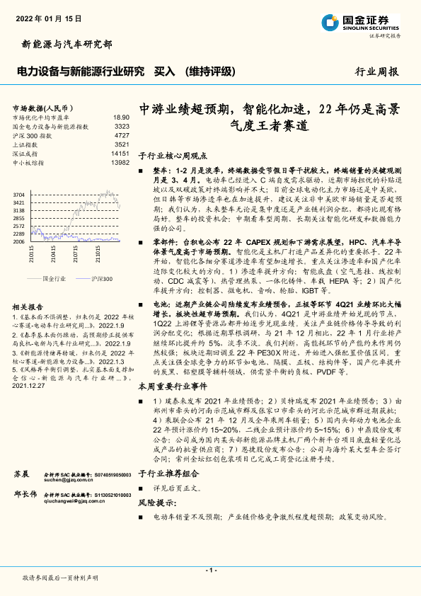 【国金证券】【20220115】电力设备与新能源行业研究:中游业绩超预期,智能化加速,22年仍是高景气度王者赛道-13页