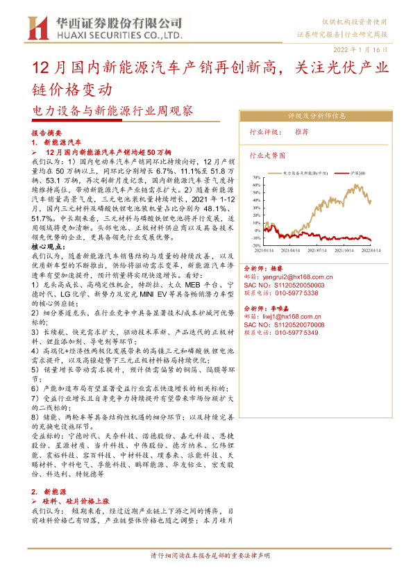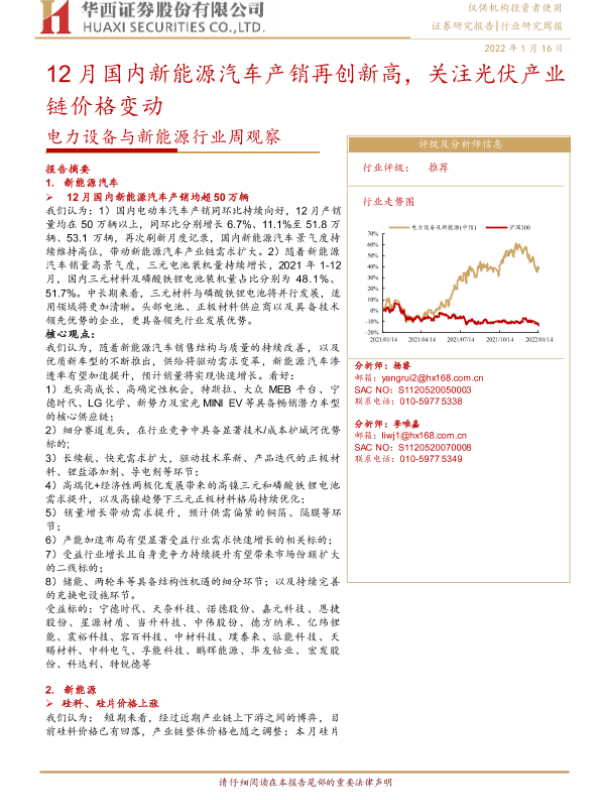 【华西证券】【20220116】电力设备与新能源行业周观察:12月国内新能源汽车产销再创新高,关注光伏产业链价格变动-16页