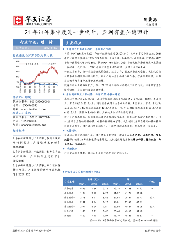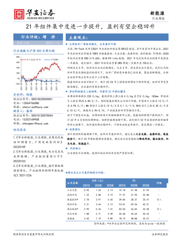 【华安证券】【20220116】21年组件集中度进一步提升,盈利有望企稳回升-16页