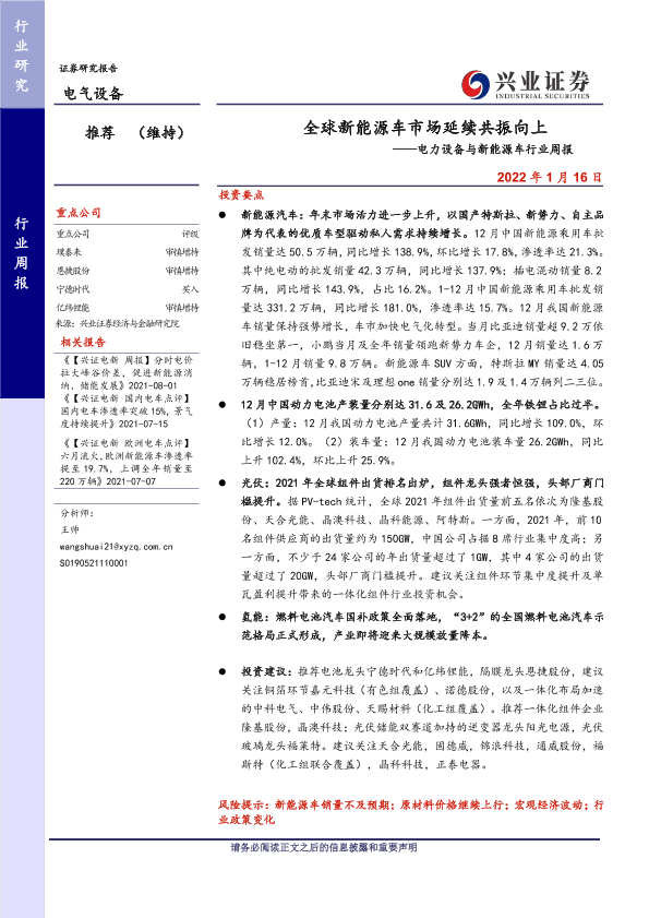 【兴业证券】【20220116】全球新能源车市场延续共振向上——电力设备与新能源车行业周报-23页