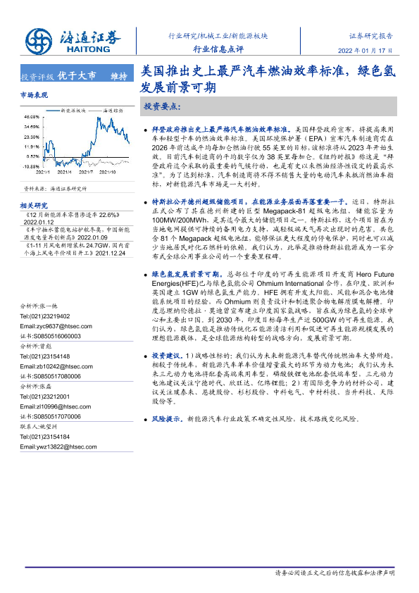 【海通证券】【20220117】20220117-海通证券-新能源板块行业信息点评:美国推出史上最严汽车燃油效率标准,绿色氢发展前景可期-2页