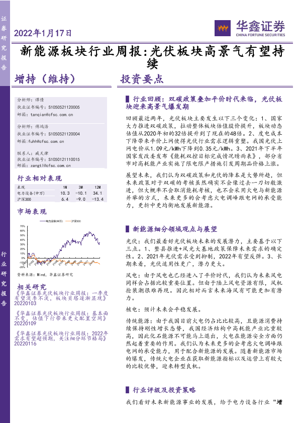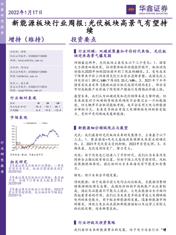 【华鑫证券】【20220117】新能源板块行业周报:光伏板块高景气有望持续-9页
