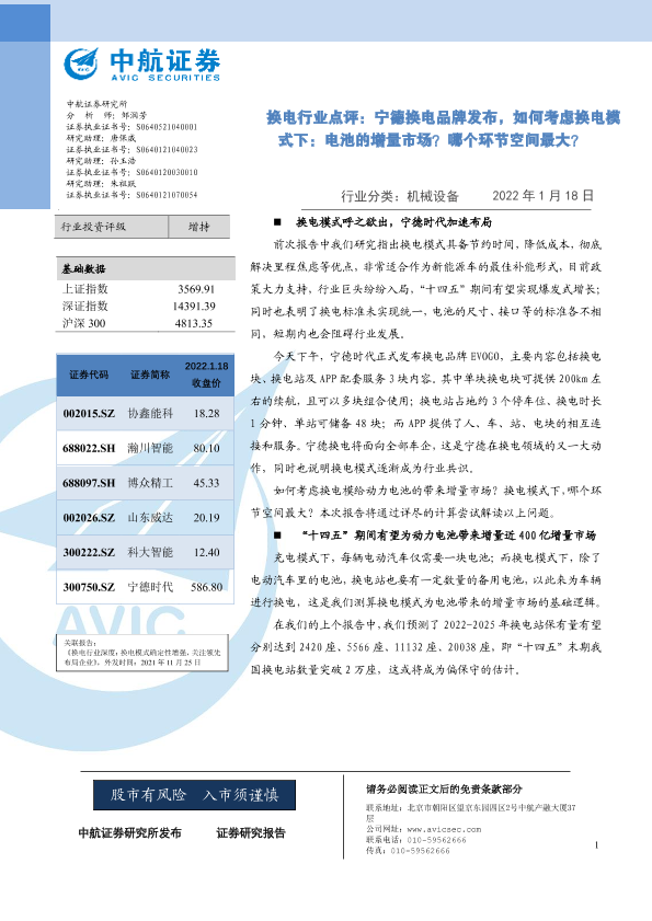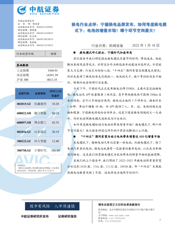 【中航证券】【20220118】换电行业点评:宁德换电品牌发布,如何考虑换电模式下:电池的增量市场?哪个环节空间最大?-4页