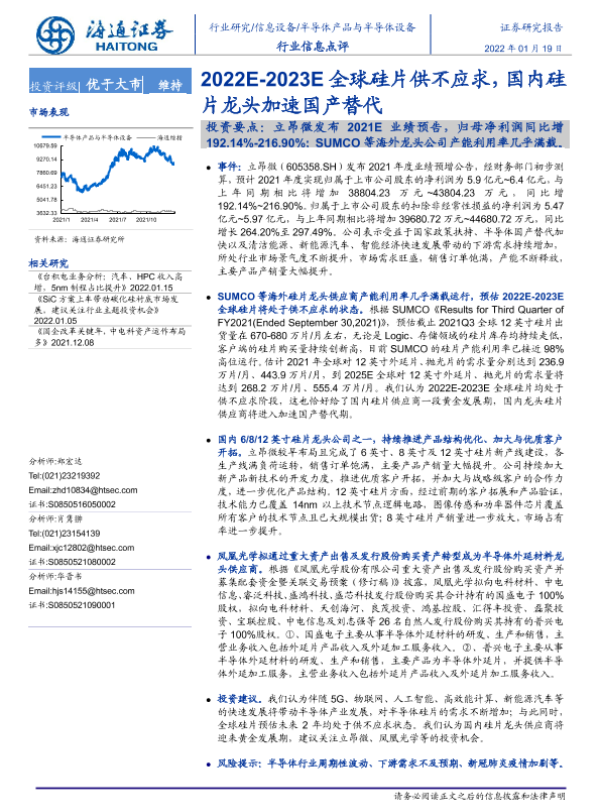 【海通证券】【20220119】2022E-2023E全球硅片供不应求,国内硅片龙头加速国产替代-2页